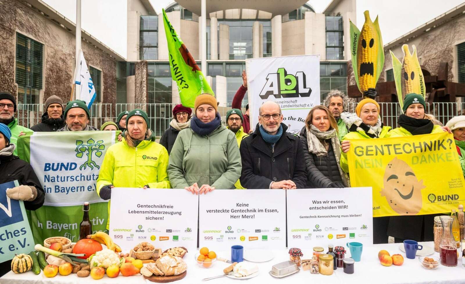 erlin, 2. Dezember 2025 — Ein Bündnis aus Umwelt- und Landwirtschaftsverbänden hat heute mit einer Protestaktion vor dem Bundeskanzleramt gegen die geplante Deregulierung neuer Gentechnik (NGT) demonstriert. Die Organisationen forderten die Bundesregierung auf, dem Ergebnis des morgen stattfindenden EU-Trilogs nicht zuzustimmen, solange Umwelt, Verbraucher:innen und Lebensmittelwirtschaft – einschließlich der Biobranche – nicht ausreichend geschützt werden.
